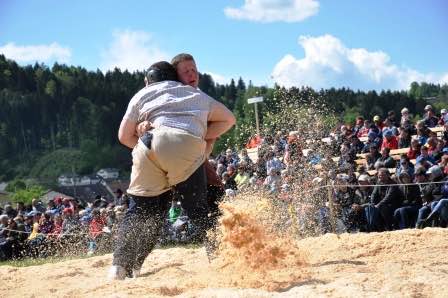 Rund 5000 Zuschauer fieberten während diesem willkürlichen Sonntag (was das Wetter anbelangt) mit den 165 antretenden Schwinger mit. Auf 2 Schwingplätzen stand auch je ein Kampfrichter aus unserem Klub und unser Präsident machte den Platz Chef. Sandra Zuber kümmerte sich nicht nur körperlich um unsere Schwinger sondern auch Mental.